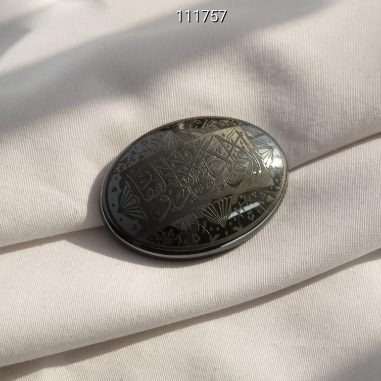 این نگین تک حدید صینی درشت اصل و با حکاکی [لافتی الا علی لا سیف الا ذوالفقار]بوده و وزن آن تقریبا 23.6 گرم است کیفیت این نگین بسیار بالا بوده و به صورت تک قابل استفاده می باشد شما می توانید از این نگین زیبا در ساخت مدال یا انگشتر نیز استفاده کنید.