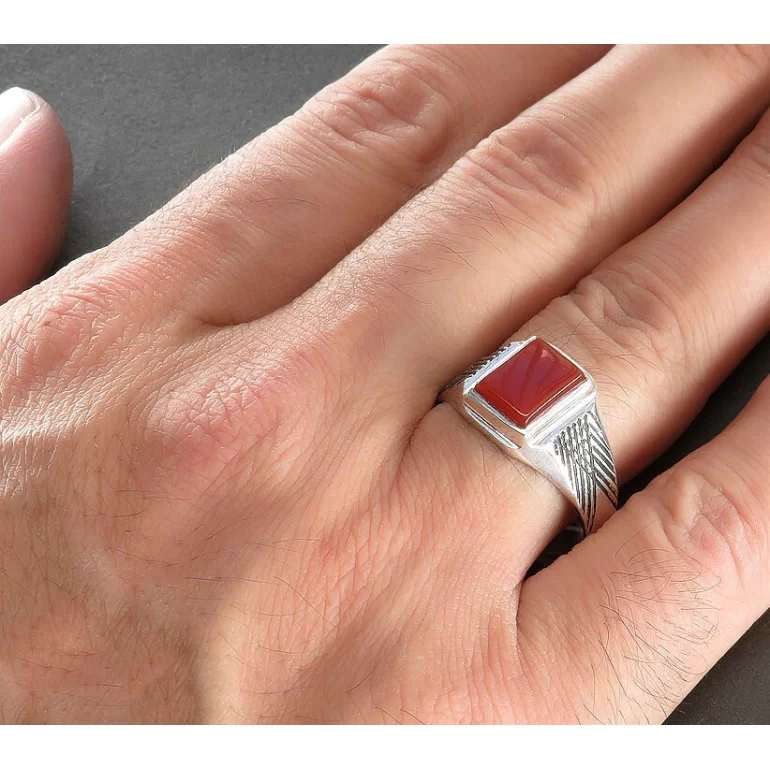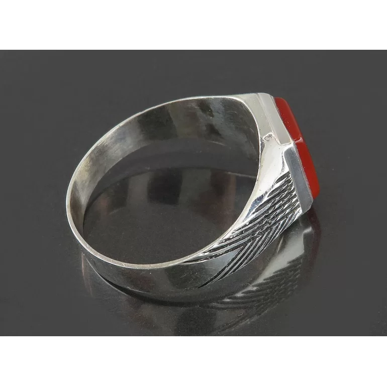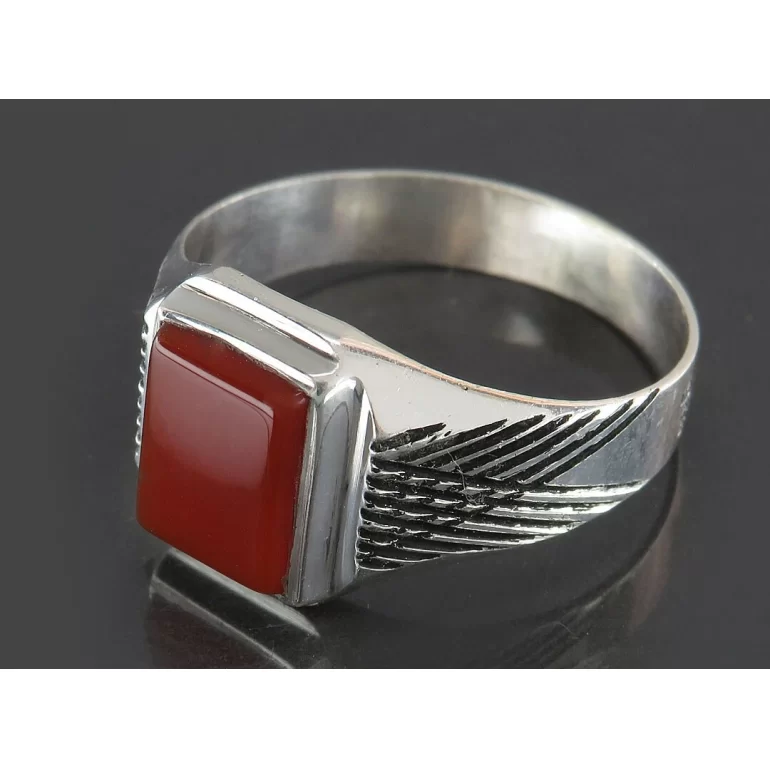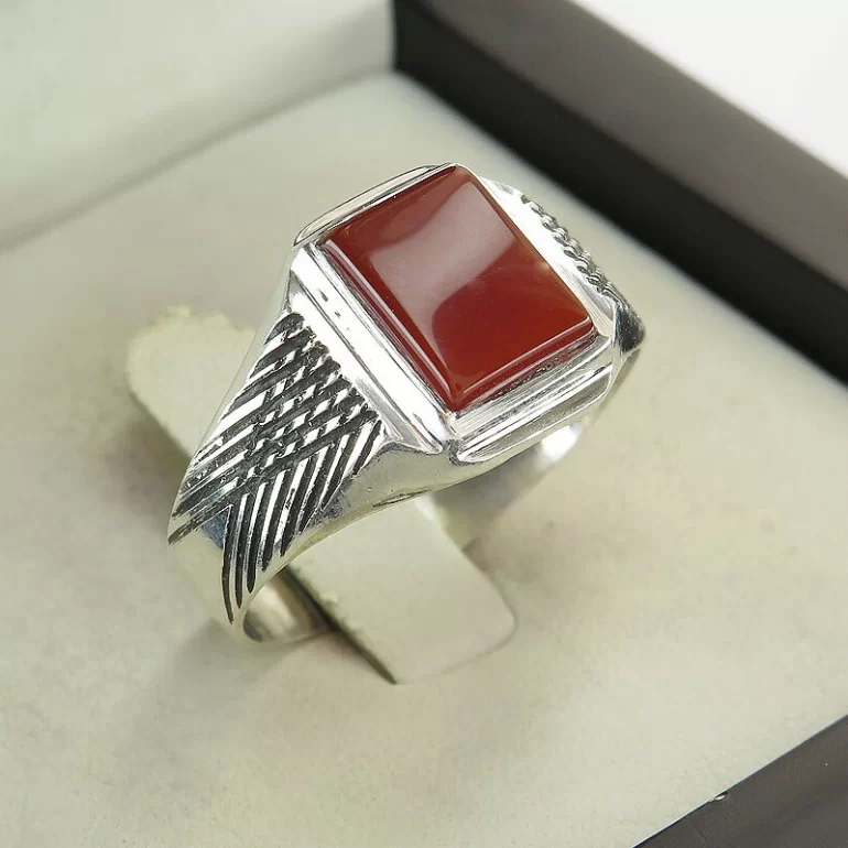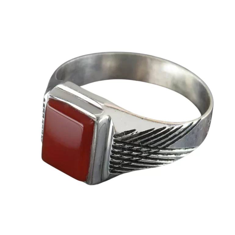 رکاب این انگشتر مردانه از نقره 925 عیار بوده و نگین آن از جنس عقیق قرمز به همراه حرز امام جواد می باشد. وزن این انگشتر نفیس تقریبا 6 گرم است و به صورت حرفه ای به دست استادکار خبره و باتجربه ساخته می شود.