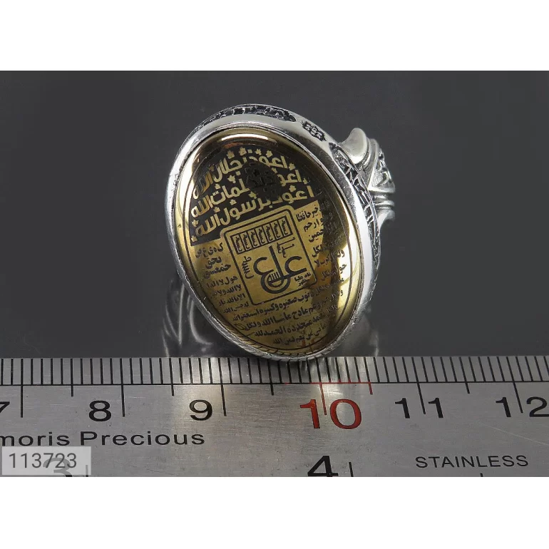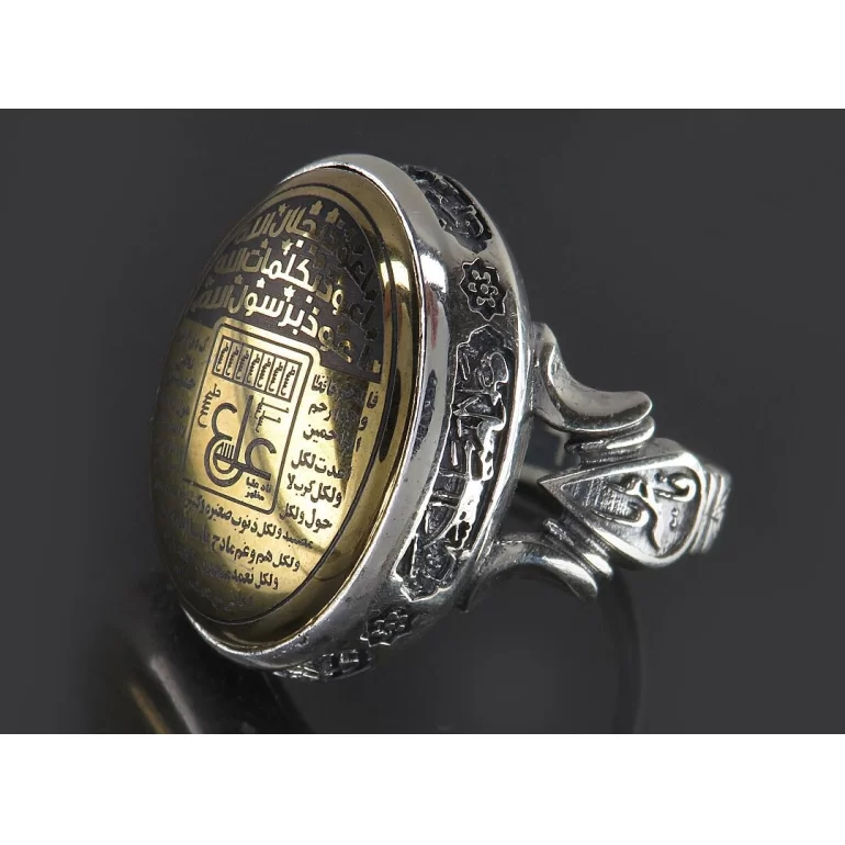 انگشتر مردانه نقره حدید صینی [یا علی و صلوات امام حسین و یا فاطمه و سه جلاله و عین علی] - کد 113723