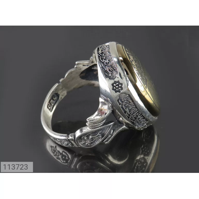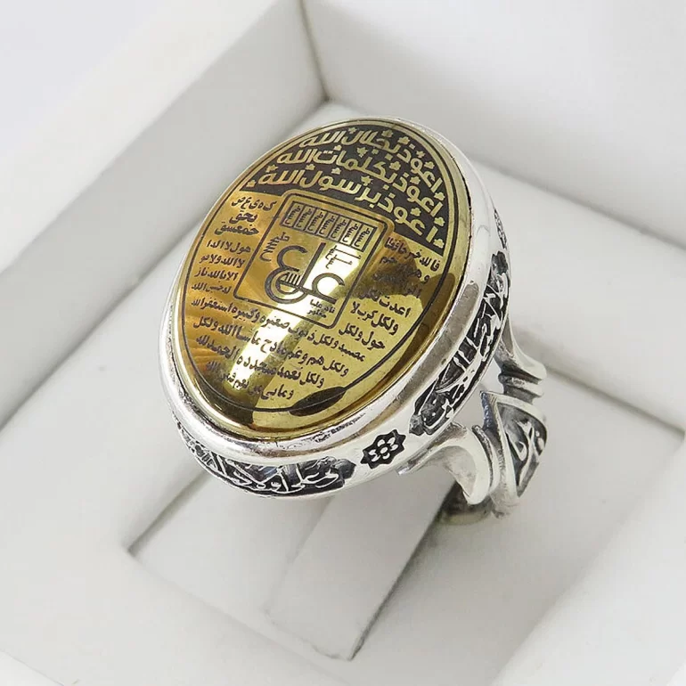 رکاب این انگشتر مردانه از نقره 925 عیار بوده و نگین آن از جنس حدید صینی می باشد. وزن این انگشتر نفیس تقریبا 17.5گرم است و به صورت حرفه ای به دست استادکار خبره و باتجربه ساخته می شود و دارای مخرج کاری دست ساز است.