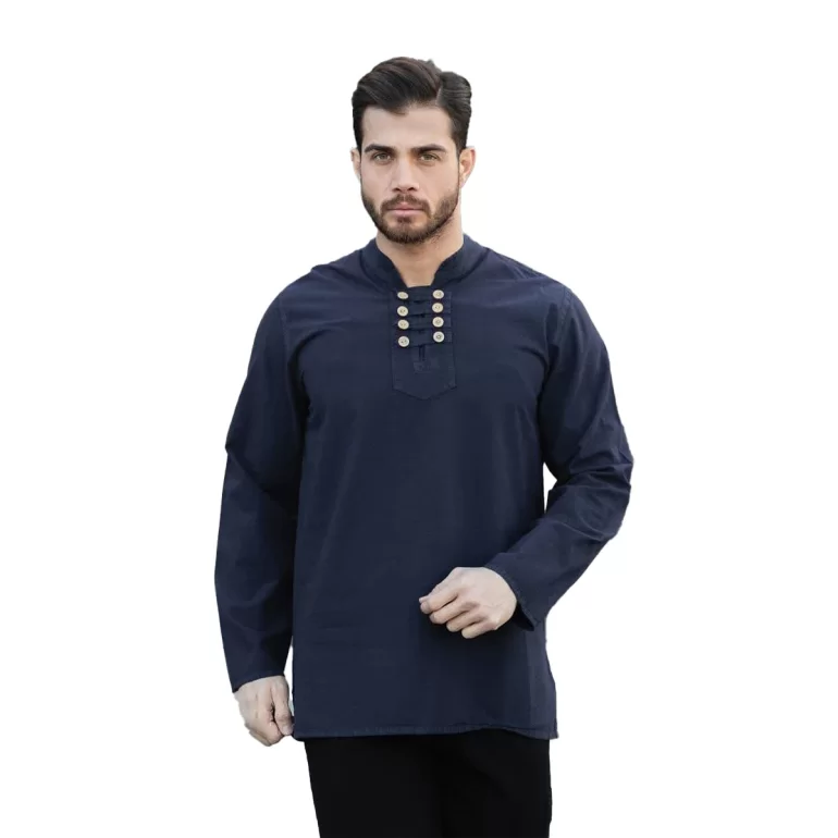 پیراهن الیافی مردانه مدل هشت دکمه رنگ سرمه ای کد 814