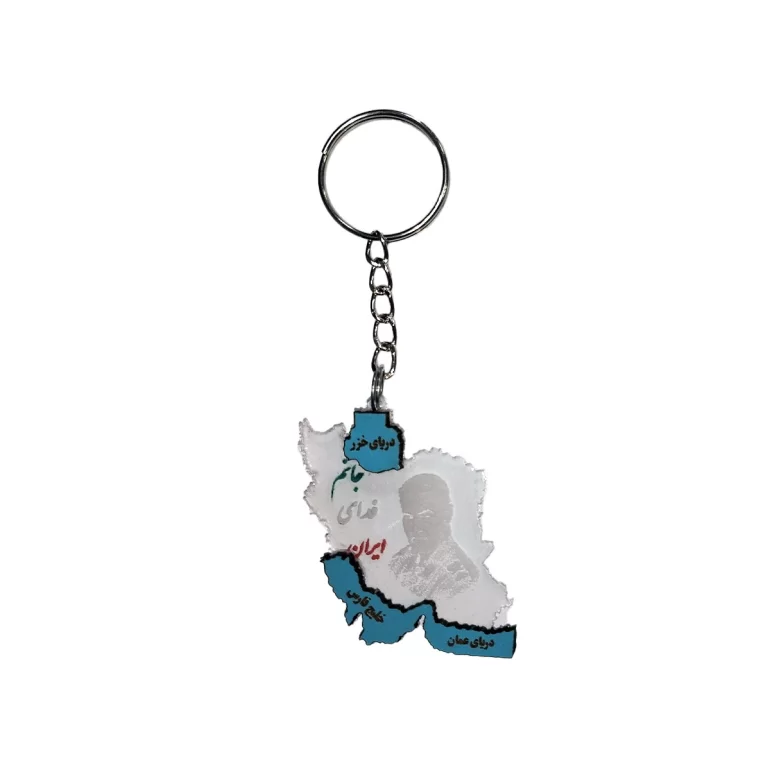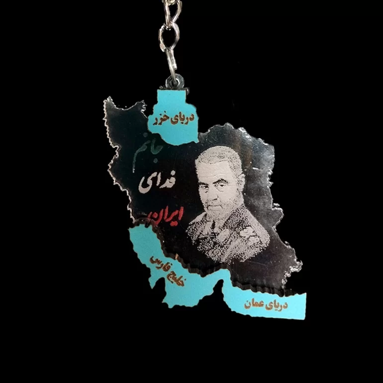 جاکلیدی نقشه ایران طرح سردار سلیمانی و جانم فدای ایران از پلاستیک شیشه ای یا همان پلکسی گلاس شفاف باکیفیت ساخته شده است. یراق آلات به کار رفته در این محصول از بهترین نوع بوده و طول عمر بالایی دارد.