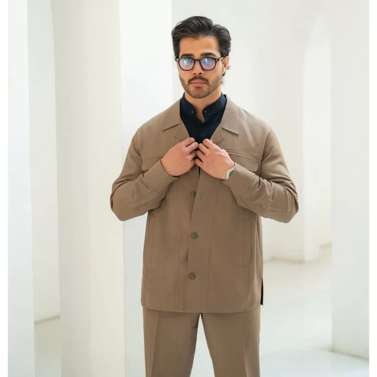 کت و شلوار لبنانی مدل چهار جیب رنگ نسکافه ای کد 909