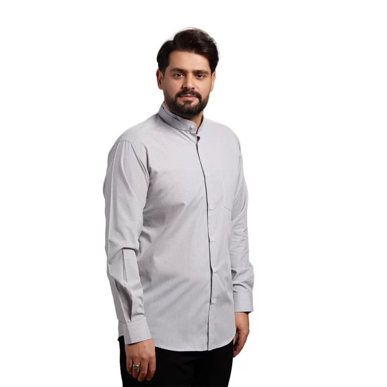 پیراهن مردانه آستین بلند مدل یقه دیپلمات کد PC12266 رنگ طوسی