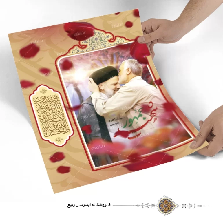 پوستر شهید سید ابراهیم رئیسی طرح بوسه حاج قاسم سلیمانی