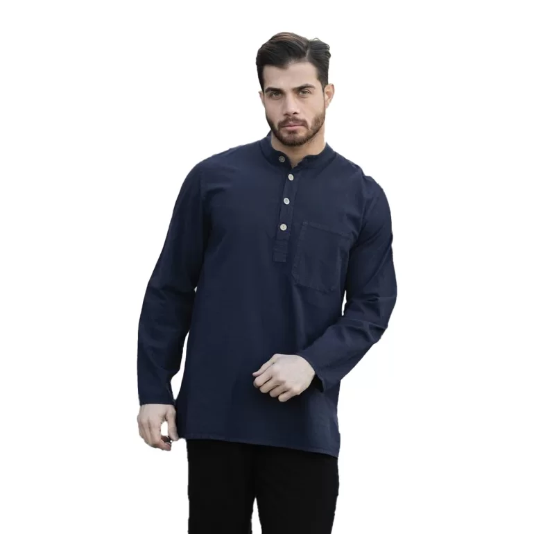 پیراهن الیافی مردانه مدل چهار دکمه رنگ سورمه ای کد 774