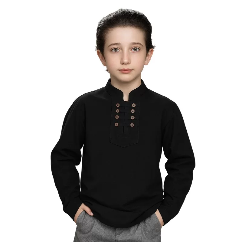 پیراهن الیافی پسرانه مدل هشت دکمه رنگ مشکی کد 210