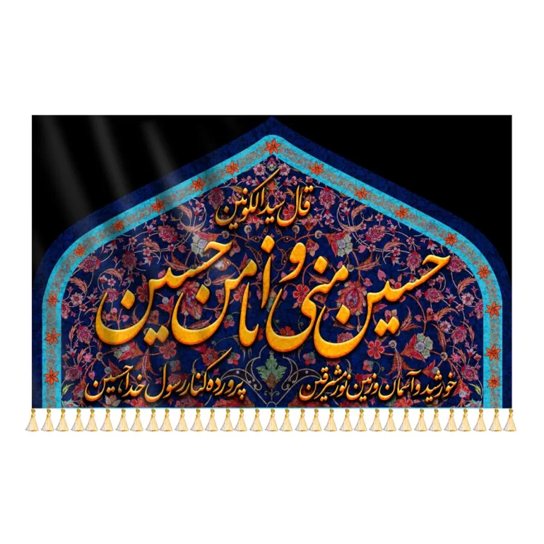 کتیبه ویژه ماه محرم و صفر، محصولی مذهبی با ذکر «حسین منی و انا من حسین» است که از پارچه مخمل purche با گرماژ 420 تولید شده است. این پارچه با دوام و وزین، عمدتاً در صنعت مبلسازی و پردهدوزی استفاده میشود و به دلیل کیفیت چاپ بالا، مقاومت در برابر چروک و عدم بازتاب نور، برای استفاده در هیئتها و مراسمهای مذهبی ایدهآل است. یراق دستساز و مواد اولیه درجه یک، همراه با طراحی مبتنی بر نقوش و موتیفهای ایرانی اسلامی، این محصول را به نمادی از ارادت به امام حسین(ع) و هنر ملی تبدیل کرده است. هدف از تولید این کتیبه، ارتقای سطح کیفی بصری در جهان تشیع است.