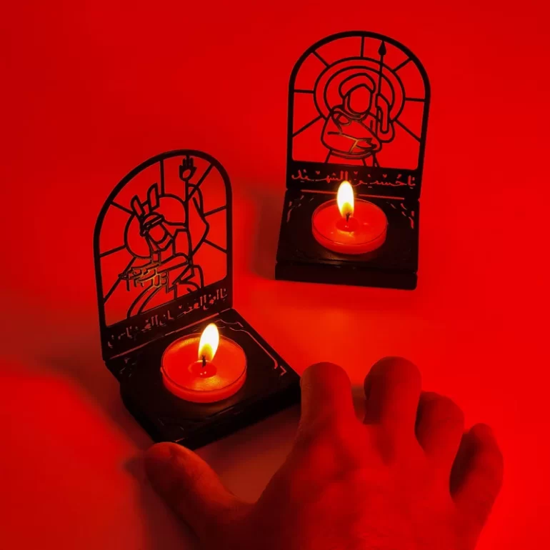 شمعدان امام حسین (ع) با ذکر «یا حسین الشهید (ع)» محصولی زیبا و پر از حس معنویت است که هر محیط را از عشق به اهلبیت علیهم السلام سرشار میکند. این شمعدان ها از جنس فلز و با ابعاد 7.5×10 سانتی متر و ارتفاع 12 سانتی متر تولید شده اند.