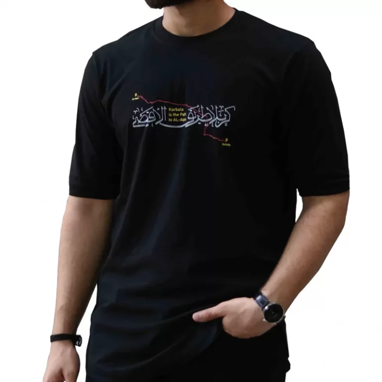 تیشرت مشکی مردانه آستین کوتاه طرح طریق الاقصی