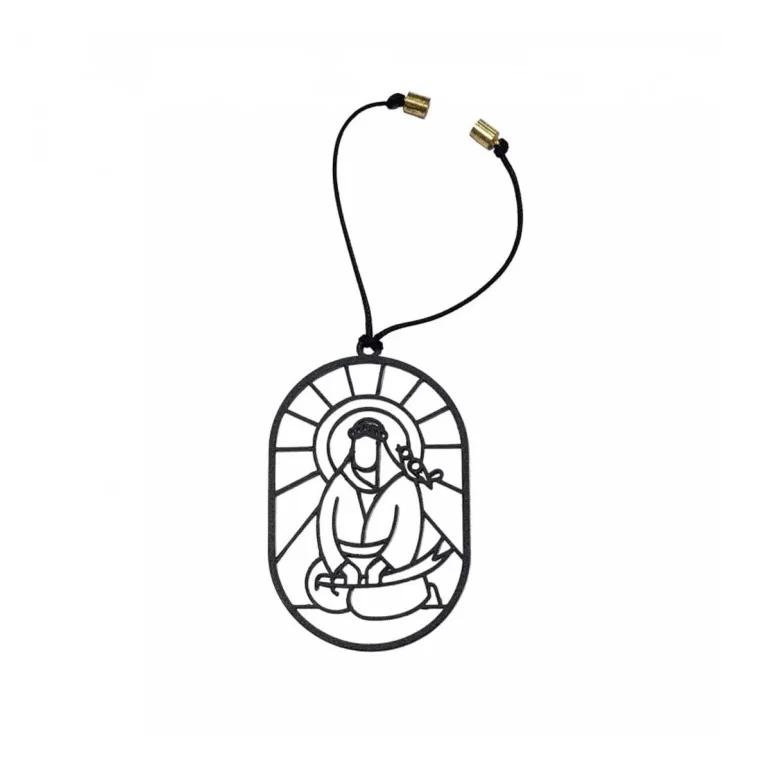 این محصول از جنس فلز بوده و در ابعاد 9×5.5 سانتی متر به شیوه ای هنرمندانه طراحی شده است و دارای یک بند مقاوم و یک آهنربا در انتهای آن جهت آویختن به آینه ماشین می باشد.