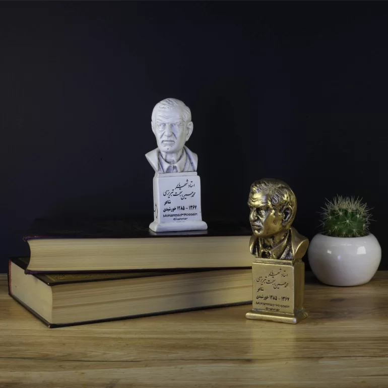سردیس محمد حسین بهجت تبریزی ملقب به شهریار از جنس پتینه مصنوعی و در ابعاد تقریبی 15×7×7 سانتی متر تولید شده است. این محصول قابل شستشو هنر دست هنرمندان ایرانی بوده و در ساخت آن از دستگاه های پیشرفته بهره گرفته شده است.