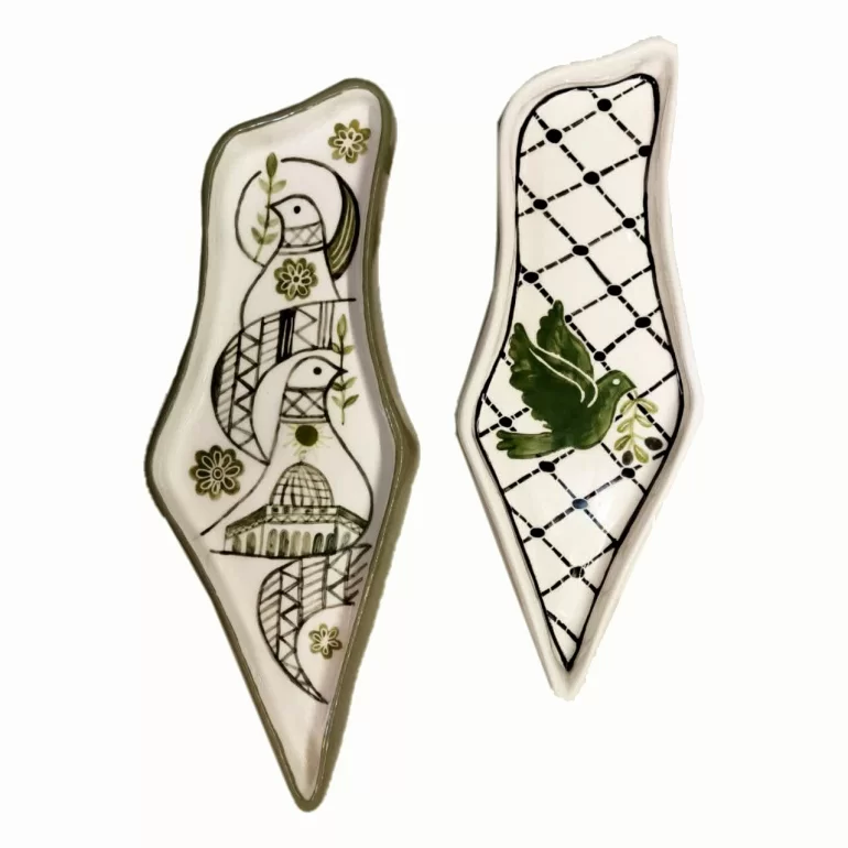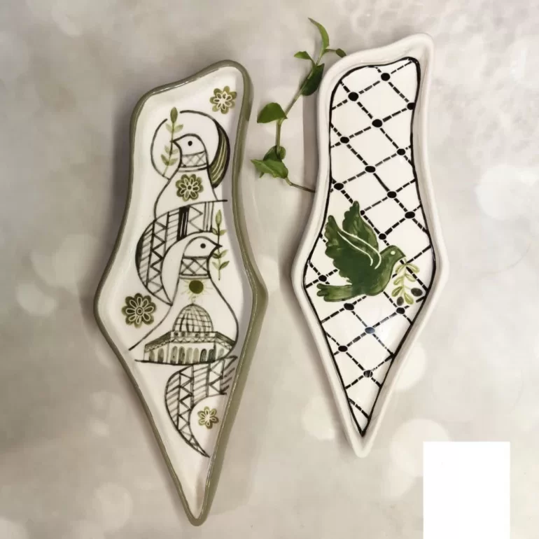 همراه داشتن نشانههای مقاومت فلسطین در زندگی روزمره، به ما کمک میکند تا هویت فرهنگی و تاریخی خود را تقویت کنیم.این تولیدات نمادهایی از پایداری و امید هستند که یادآور مبارزات مردم فلسطین در برابر اشغالگریاند. جنس کارها سرامیک و دستساز،نقاشی شده با دست و پخته شده در کوره دمای بالای 1000 درجه می باشد، بهداشتی و قابل مصرف روزمره. این اثر هم بعنوان ظرف پذیرایی و هم بعنوان دیوارکوب قابل استفاده است، اندازه اثر 27 در 17 سانتی متر و طبق سلیقه قابل تغییر سایز و نقاشی می باشد.