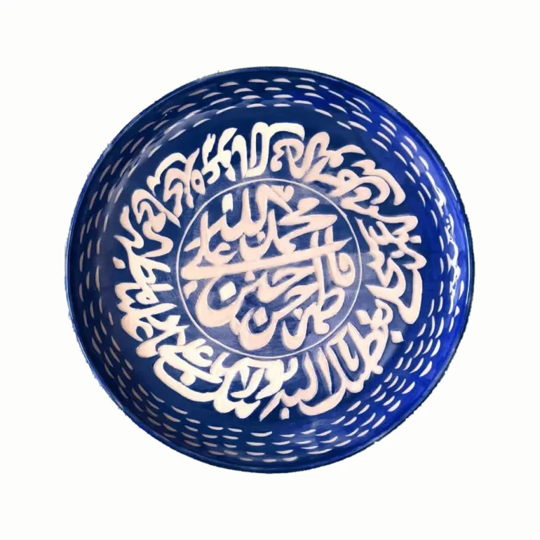 ظرف دیوارکوب طرح پنج تن که جنس آن سرامیک لعابدار و نقاشی شده با دست است. قطر اثر 27 سانتی متر و طبق سلیقه قابل تغییر سایز و نقاشی می باشد.