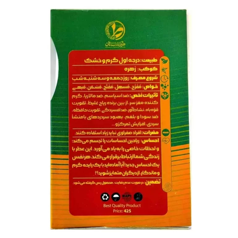 احساس: ریاحین احساسات را تجسم می‌کند؛ و لحظات خاصی را به‌یاد می‌آورد. این عطر با زندگی شما ارتباط برقرار می‌کند، هر نفس یک احساس جدید! آیا آماده‌اید با یک رایحه گرم و ماندگار، از دیگران متمایز شوید؟!