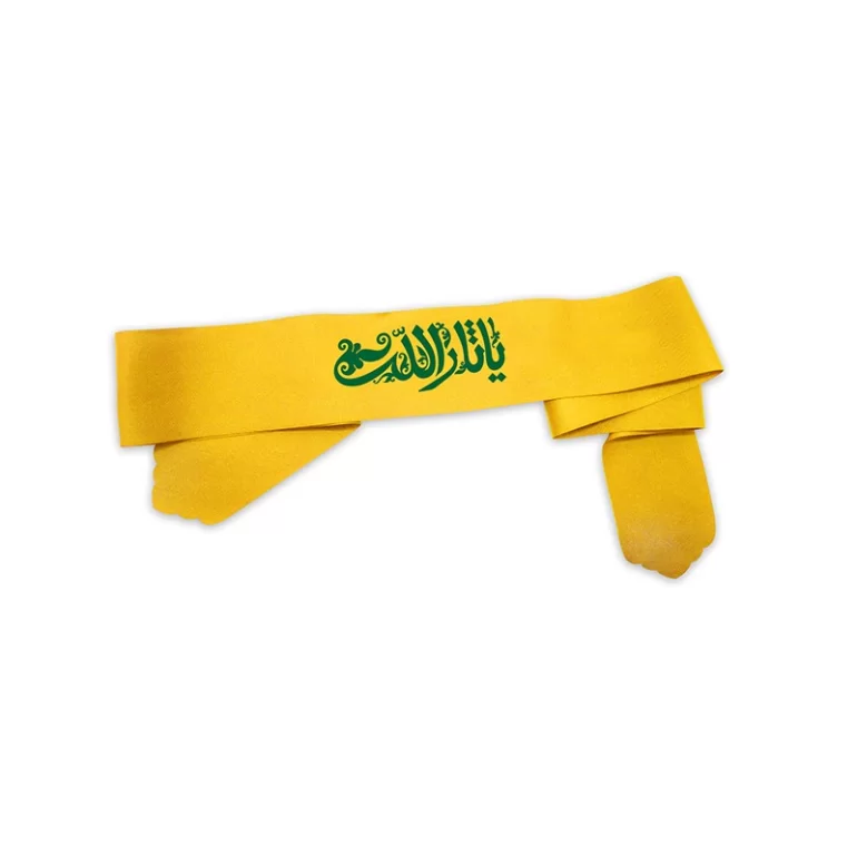 این سربند از جنس پارچه ترگال کج راه و در ابعاد تقریبی 100×6 سانتیمتر تولید شده است؛ چاپ صورت گرفته روی این محصول از طریق دستگاه های چاپ سیلک صورت گرفته است.