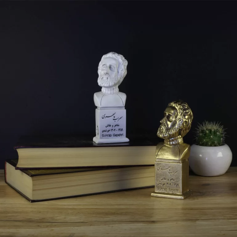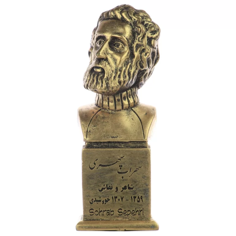 سردیس شاعر سهراب سپهری از جنس پتینه مصنوعی و در ابعاد تقریبی 17×6×6 سانتی متر تولید شده است. این محصول قابل شستشو هنر دست هنرمندان ایرانی بوده و در ساخت آن از دستگاه های پیشرفته بهره گرفته شده است.