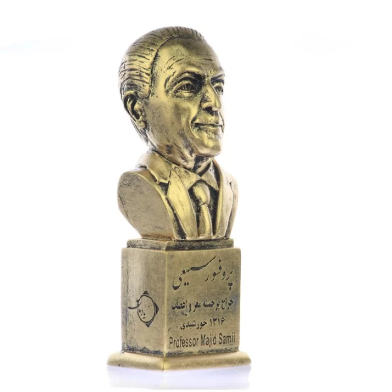سردیس مدل پروفسور مجید سمیعی از جنس پتینه مصنوعی و در ابعاد تقریبی 17×6×6 سانتی متر تولید شده است. این محصول قابل شستشو هنر دست هنرمندان ایرانی بوده و در ساخت آن از دستگاه های پیشرفته بهره گرفته شده است.