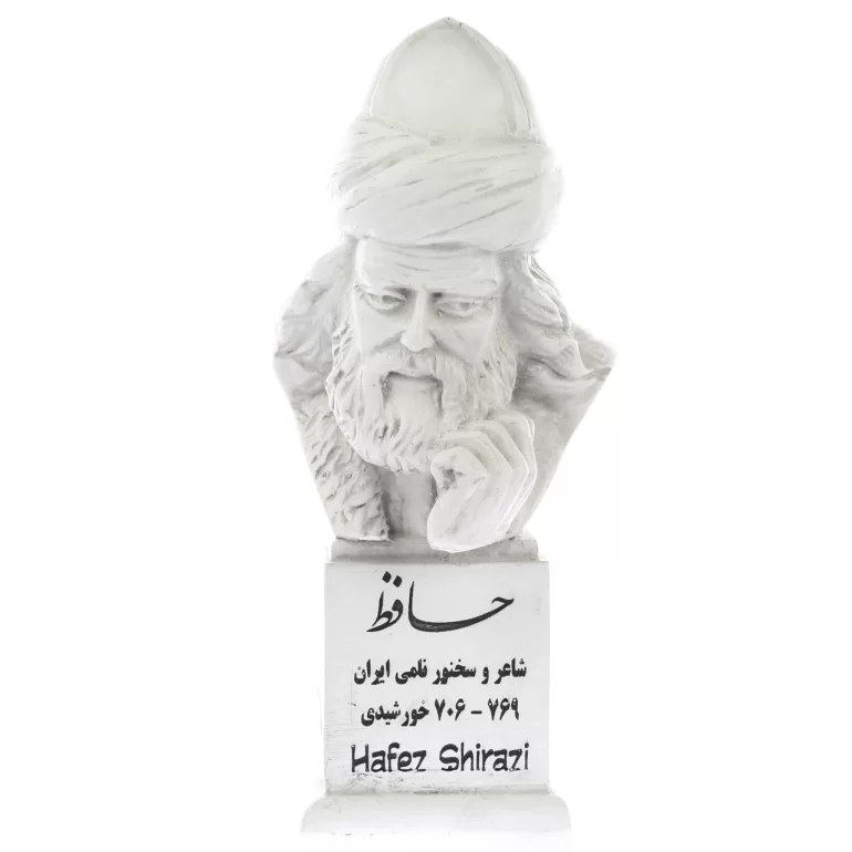 سردیس خواجه شمس‌الدین محمد بن بهاءالدّین محمد حافظ شیرازی از جنس پتینه مصنوعی و در ابعاد تقریبی 17×6×6 سانتی متر تولید شده است. این محصول قابل شستشو هنر دست هنرمندان ایرانی بوده و در ساخت آن از دستگاه های پیشرفته بهره گرفته شده است.