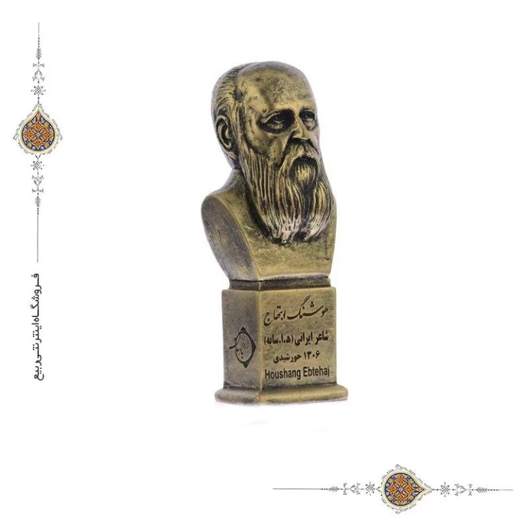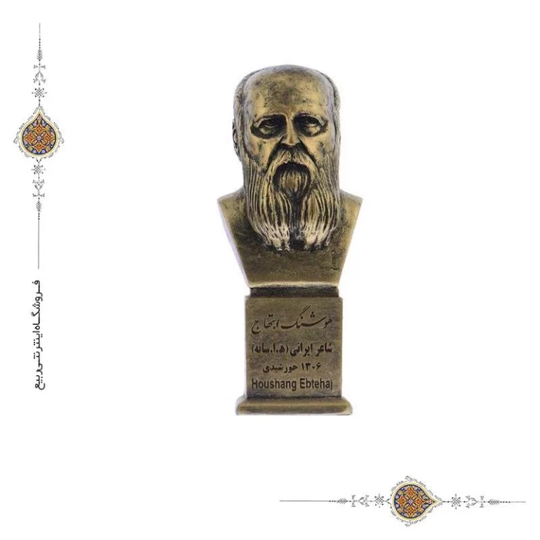 سردیس هوشنگ ابتهاج از جنس پتینه مصنوعی و در ابعاد تقریبی 17×6×6 سانتی متر تولید شده است. این محصول قابل شستشو هنر دست هنرمندان ایرانی بوده و در ساخت آن از دستگاه های پیشرفته بهره گرفته شده است.
