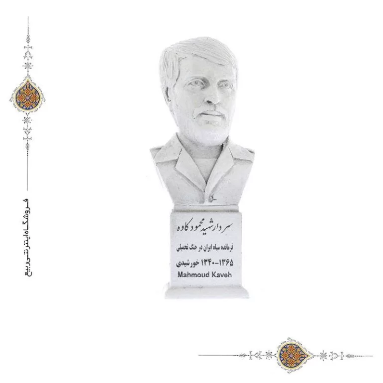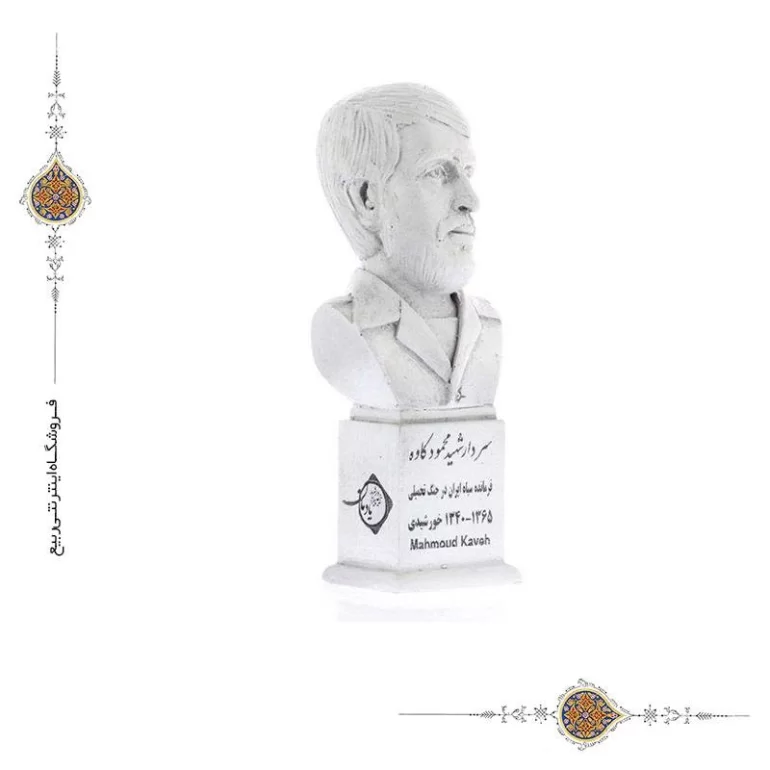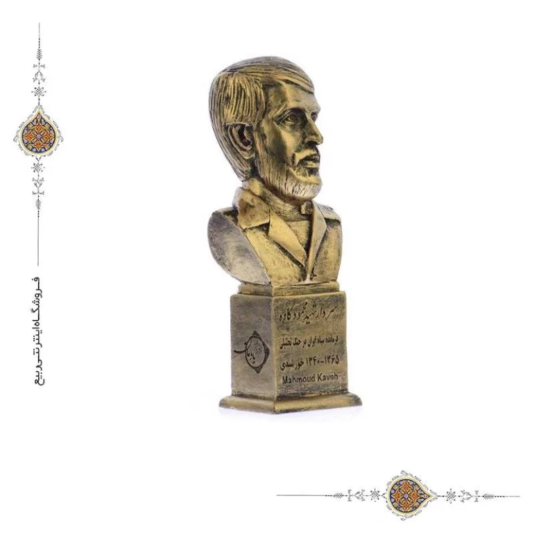 سردیس شهید محمود کاوه از جنس پتینه مصنوعی و در ابعاد تقریبی 17×6×6 سانتی متر تولید شده است. این محصول قابل شستشو هنر دست هنرمندان ایرانی بوده و در ساخت آن از دستگاه های پیشرفته بهره گرفته شده است.