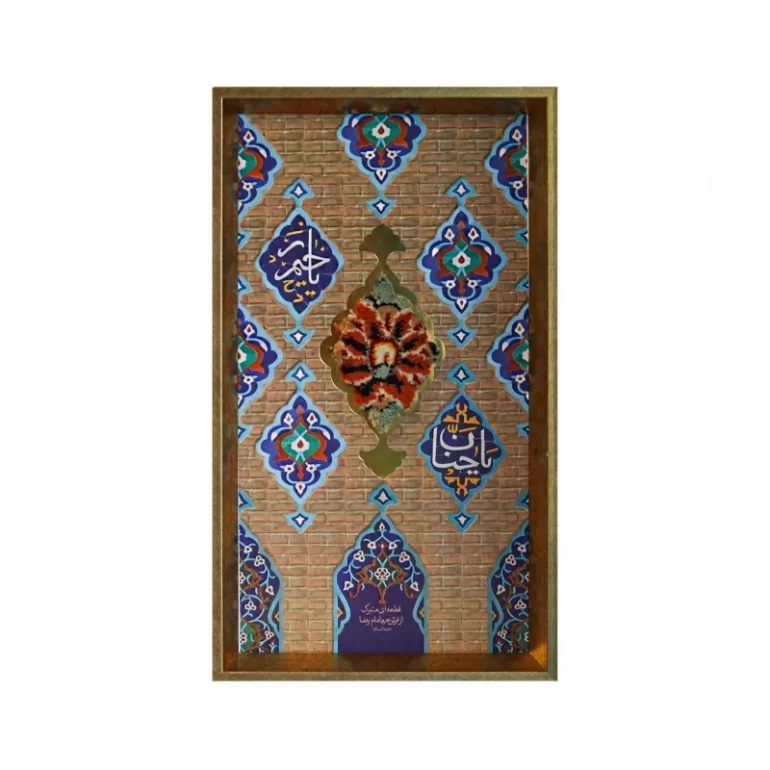 قاب فرش گلدسته حرم امام رضا (ع)، اثری هنری و معنوی است که با استفاده از فرش متبرک حرم مطهر امام رضا (ع) طراحی شده است. این قاب زیبا با الهام از گلدستههای باشکوه حرم رضوی، حس ارادت و عشق به امام هشتم (ع) را در دلها زنده میکند. ابعاد این قاب 21*37 سانتی متر است.
