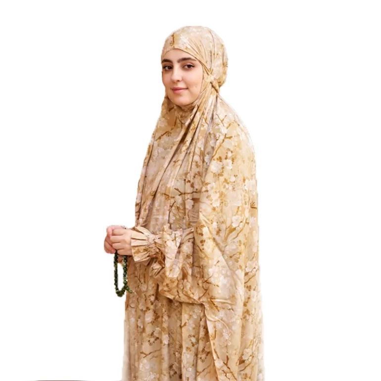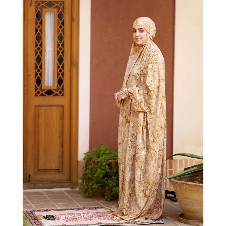 چادر نماز آستین دار طرحدار رنگی پارچه کدری كد 017