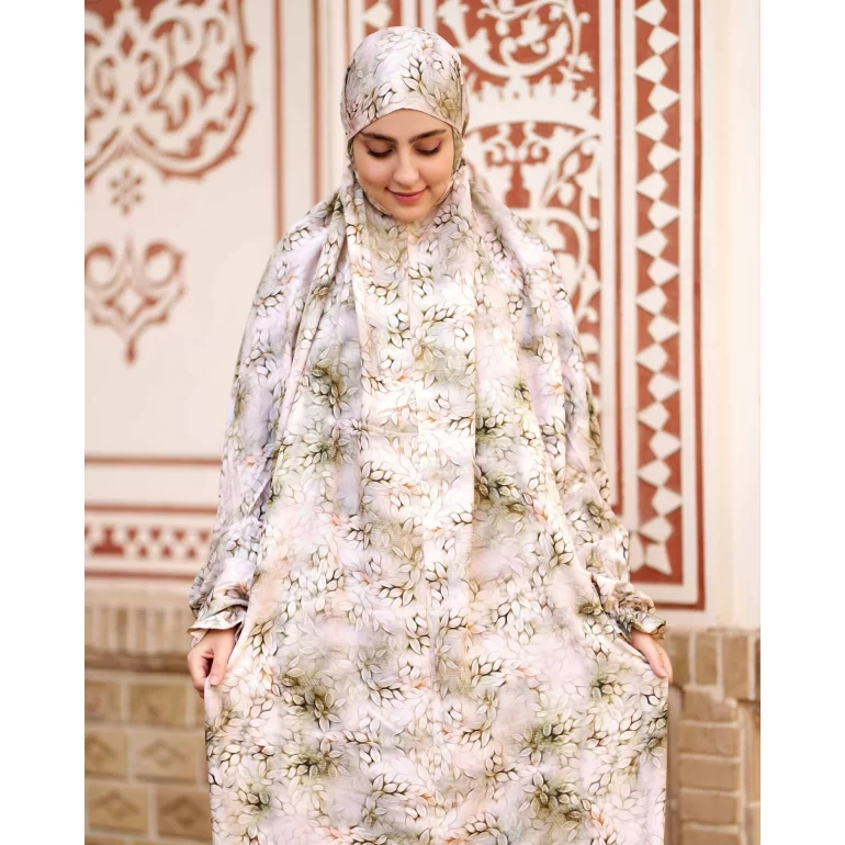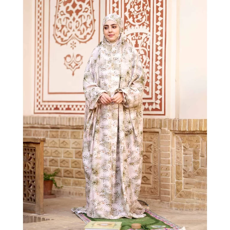 چادر نماز آستین دار طرحدار رنگی پارچه کدری كد 015