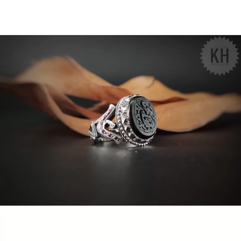 انگشتر نقره مردانه مدل عقیق جزع یمانی طرح رکاب اسم علی