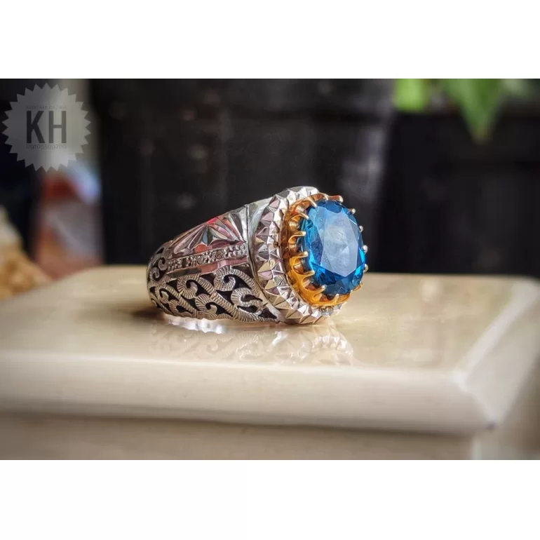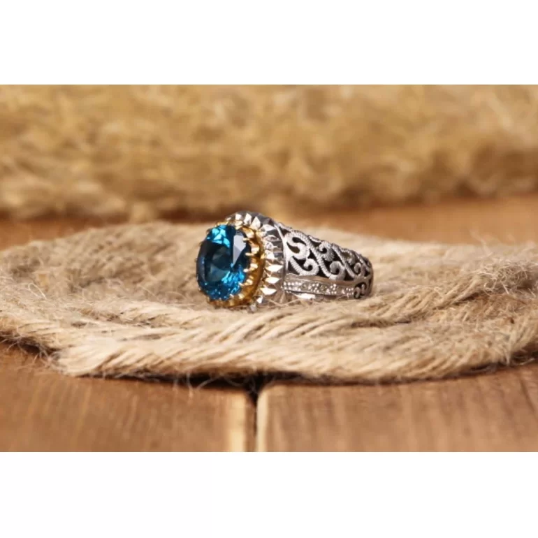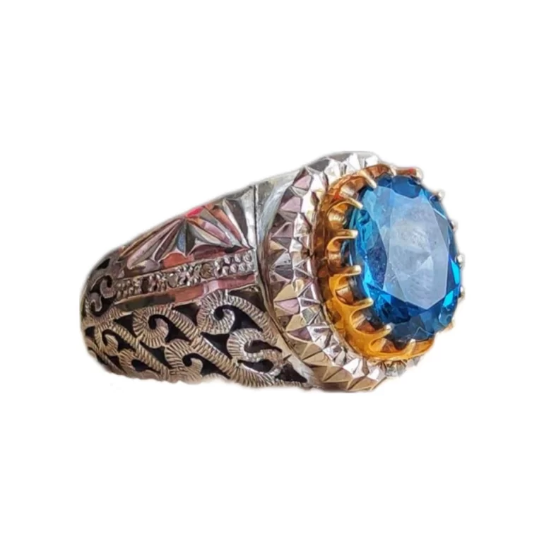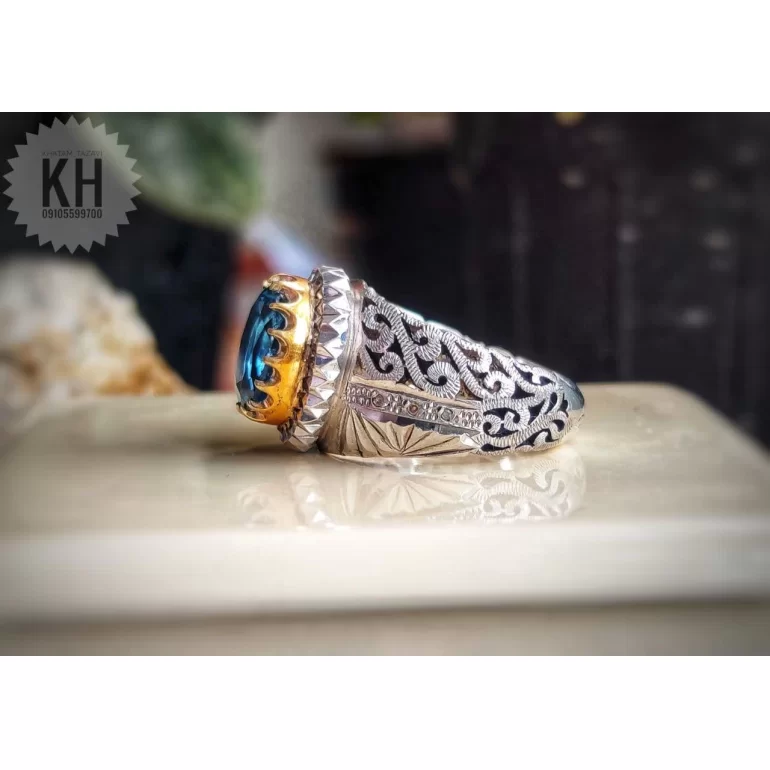انگشتر نقره مردانه مدل توپاز لندنی آبی کلکسیونی