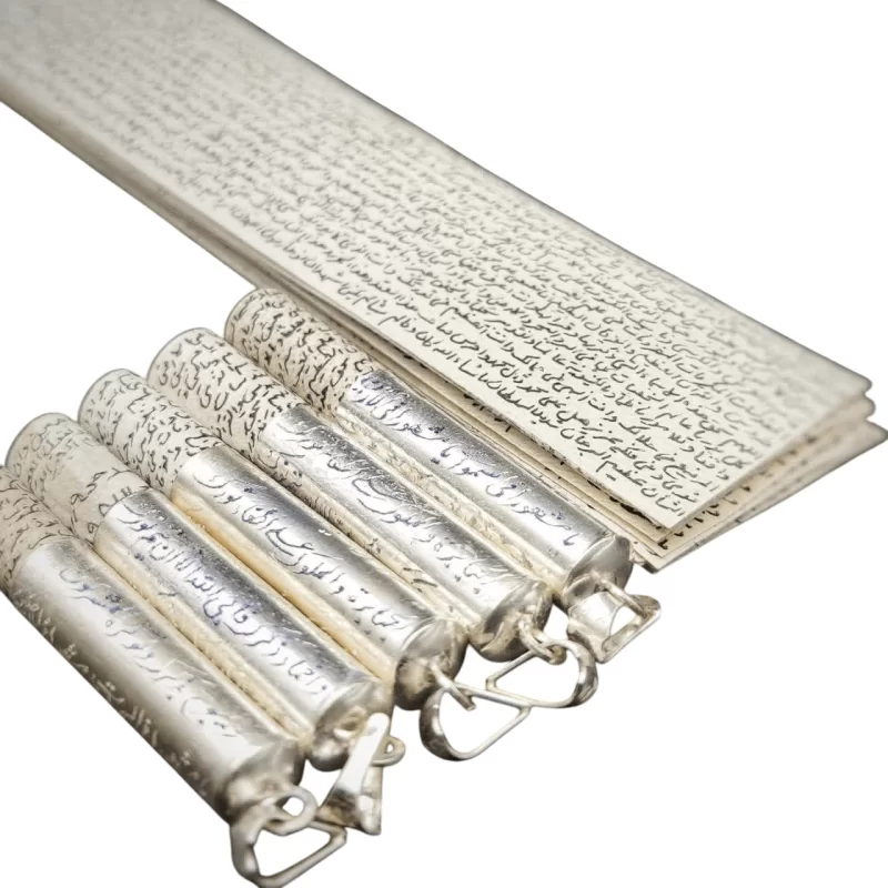 4. به همراه استوانه نقره (925 عیار) و حک دعای مخصوص روی استوانه (دعای یامشهورا فی السماوات یامشهورا ... .)