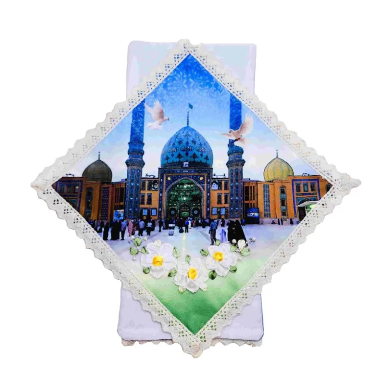 جانماز مخمل چاپی طرح جمکران روبان دوزی شده؛‌ برای تولید این جانماز از بهترین مواد اولیه استفاده شده است و هنر دست بانوان هنرمند است. ابعاد محصول در حالت باز حدودا 20 در 20 و در حالت بسته حدودا 12 در 10 است و فضای زیادی اشغال نمی کند. بنابراین یک هدیه کاربردی برای دختران تازه به تکلیف رسیده یا نوعروسان یا افرادی است که دوست دارند همیشه مهر و تسبیح داخل کیفشان یا در ماشین به همراه داشته باشند.