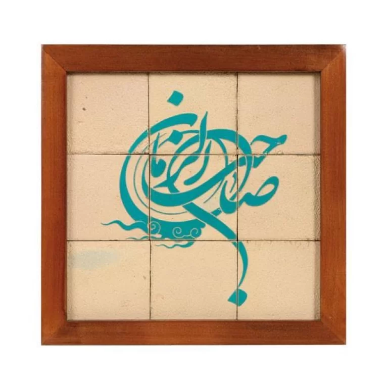 تابلو کاشی لعابدار طرح صاحب الزمان (عجل الله) تابلویی 9 تکه به ابعاد 34×34 سانتی متر از مجموعه تابلوهای جلی است. این اثر زیبا و هنرمندانه دارای قاب چوبی بوده، زمینه آن کاشی با رنگ آجری می باشد و عبارت روی تابلو با کاشی لعابدار فیروزه ای رنگ نگارش شده است.