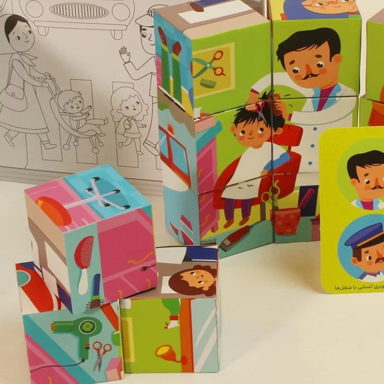 بررسی اسباب بازی مکعب تصویری (مشاغل) با فرزندان