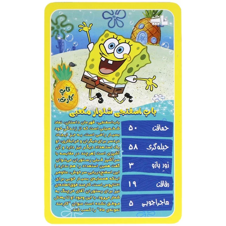 با بازی رومیزی تاپ کارت باب اسفنجی، لحظات شاد و آموزنده‌ای را برای خود و فرزندتان رقم بزنید!