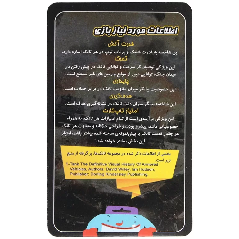 • افزایش دانش عمومی: شما با بازی کردن با این کارت‌ها، اطلاعات مفیدی در مورد تانک‌ها و جنگ‌افزار کسب می‌کنید.
