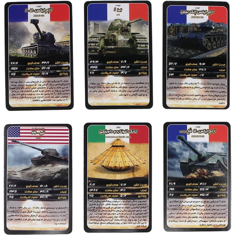 • طراحی جذاب: کارت‌ها با طراحی زیبا و رنگارنگ از تانک‌های مختلف تزئین شده‌اند.