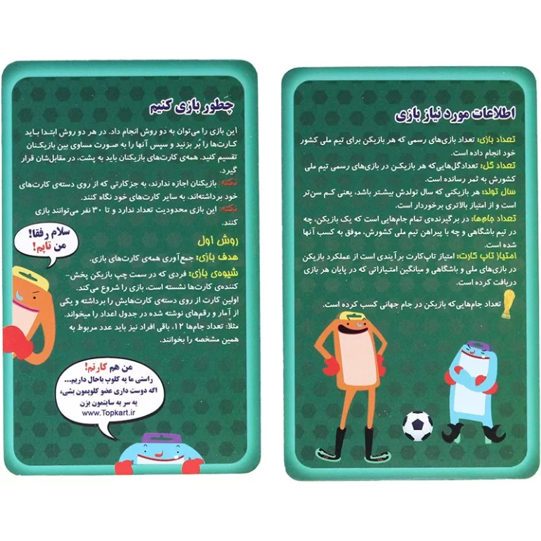 تاپ کارت ذهن آرا مدل ستارگان تاریخی فوتبال جهان یک بازی جذاب و آموزنده است که به شما اجازه میدهد تا دنیای پرشور فوتبال را بهتر بشناسید. این بازی یک هدیه مناسب برای همه فوتبالدوستان است.