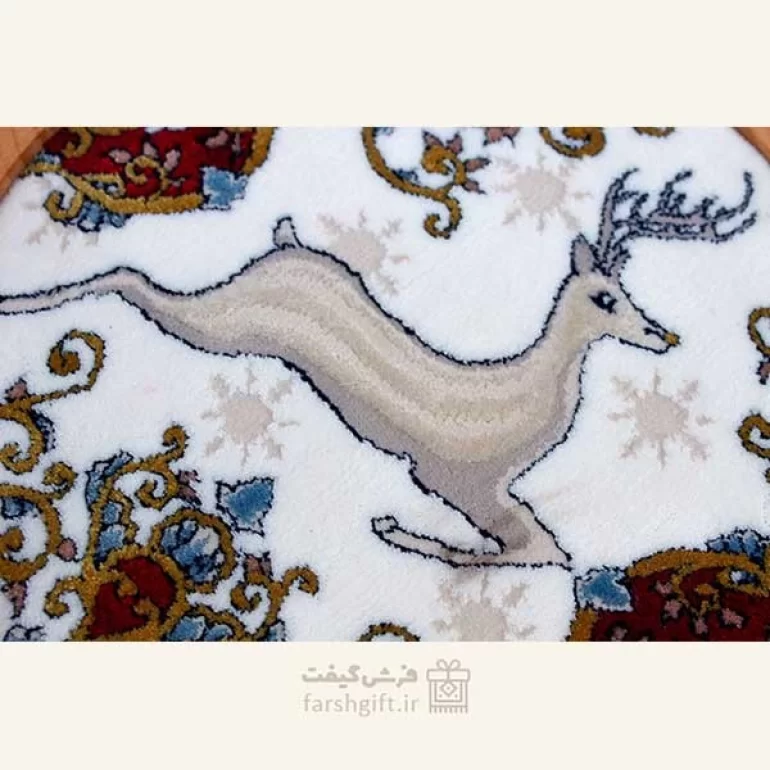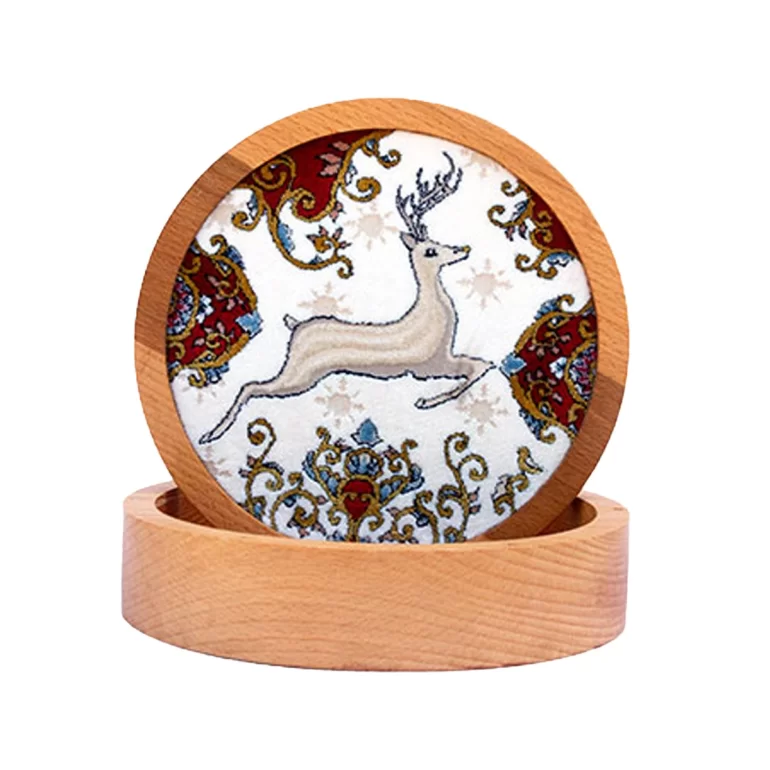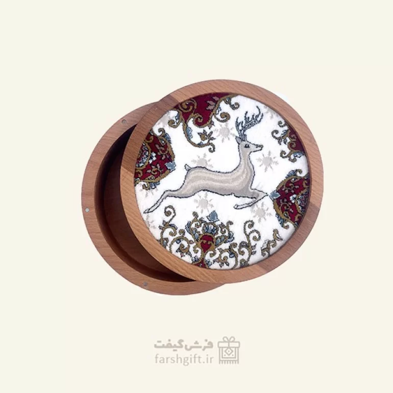 جعبه فرش گرد چوبی طرح شکارگاه