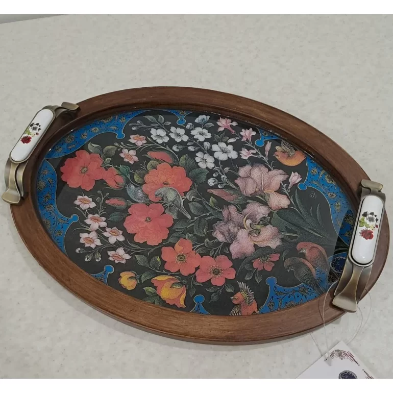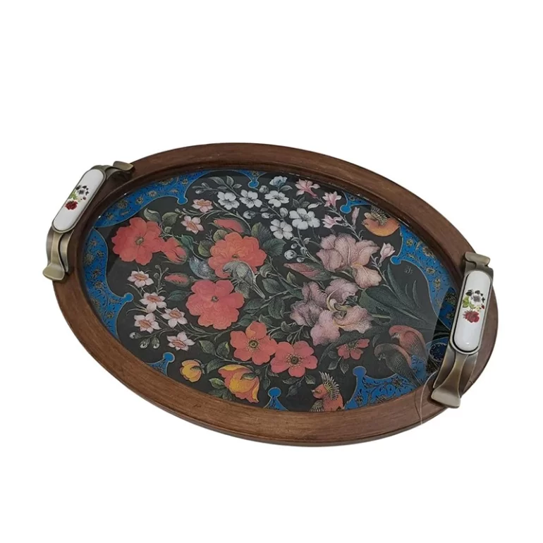 سینی چوبی رزینی بیضی دسته سرامیکی طرح 145