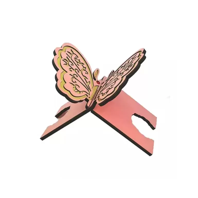 رحل قرآن  پروانه ای به رنگ صورتی و جنس ام دی اف در ابعاد 15*30 سانتی متر