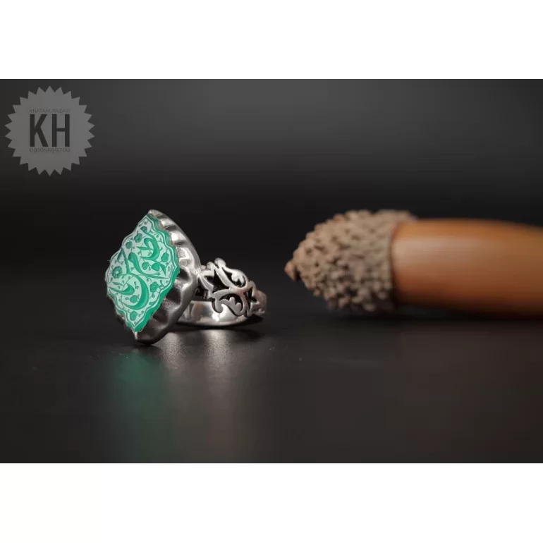 رکاب این انگشتر مردانه تمام دست ساز از نقره 925 عیار بوده و نگین آن از جنس عقیق سبز خراسانی با حکاکی مظلوم یا حسن می باشد. وزن این انگشتر نفیس تقریبا 12.72 گرم است و به صورت حرفه ای به دست استاد سید حمید ساخته می شود.