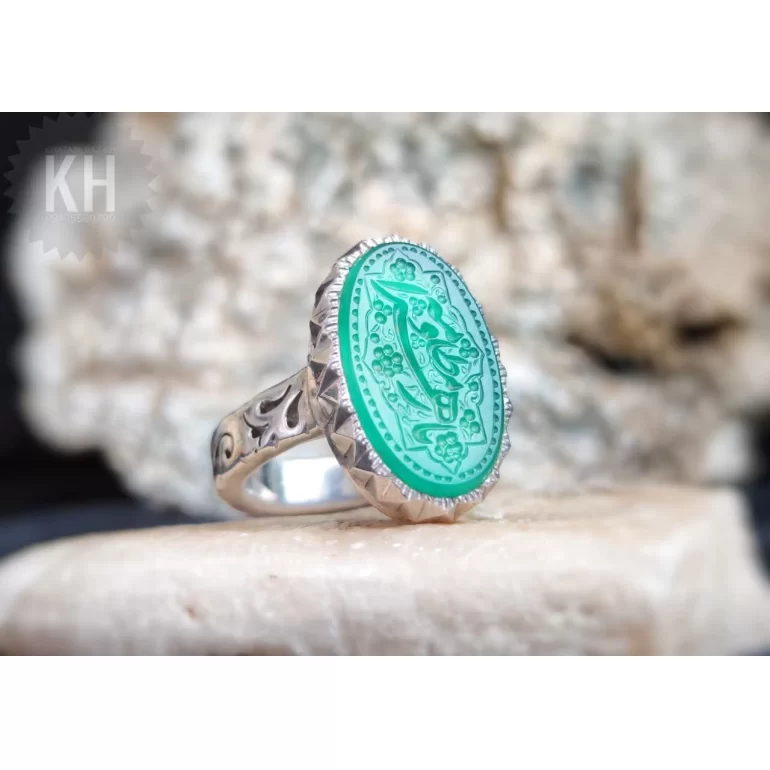 انگشتر نقره مردانه مدل عقیق سبز خراسانی حکاکی یا زهرا مظلومه (س)