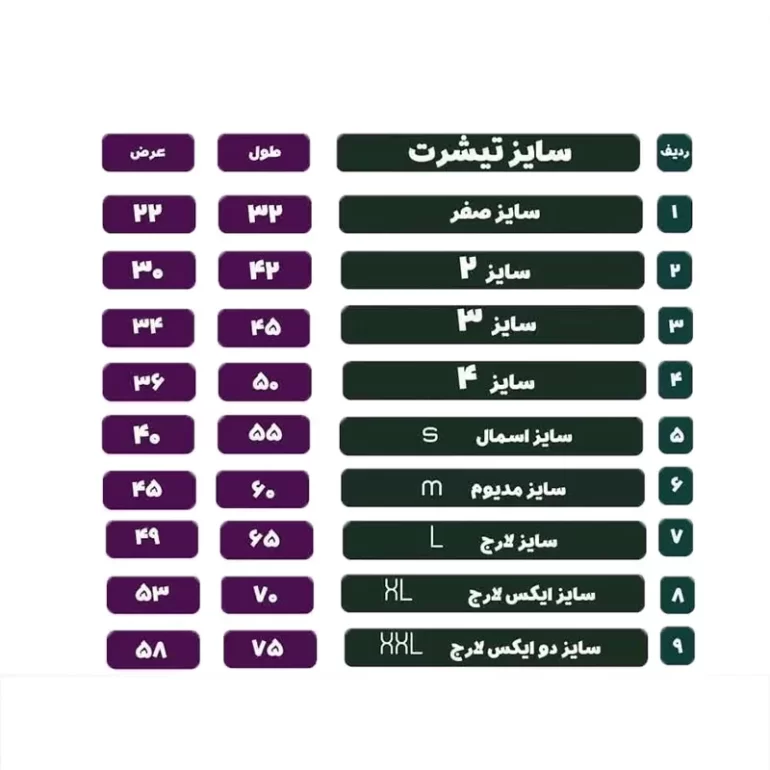 سایز تی شرت: