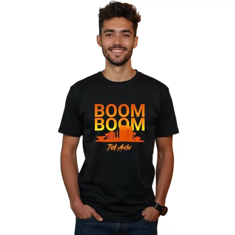 تیشرت مشکی مردانه طرح بوم بوم تلاویو