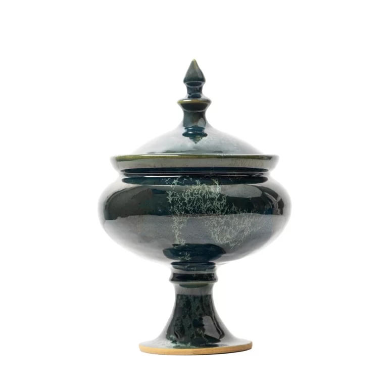شکلاتخوری سفالی توران، محصولی دستساز از سفال با لعاب قلیایی بدون فلزات سمی است. این ظرف با طراحی سنتی و لعاب سبز ترکدار یا براق، برای شکلاتخوری، گزخوری و آجیلخوری مناسب بوده و به عنوان دکوری یا هدیه نیز کاربرد دارد. ساخته شده توسط هنرمندان یزدی، نمادی از هنر و اصالت ایرانی است.