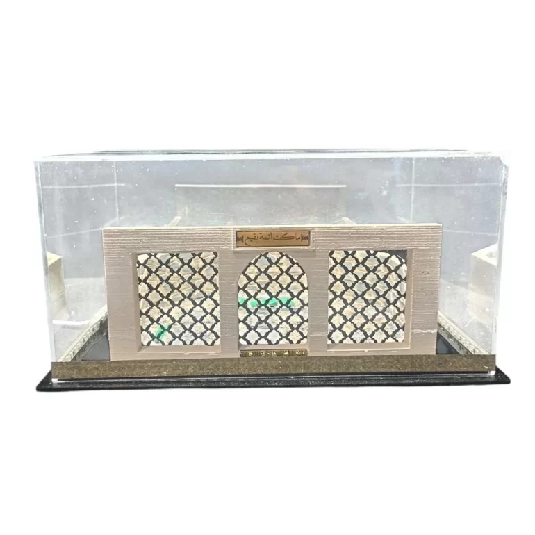 ماکت ائمه بقیع، محصولی با طراحی دقیق از جنس سنگ مصنوعی است. این ماکت برای دکور مذهبی، مجالس سوگواری و حسینیهها مناسب بوده و فضایی پر از احترام و آرامش ایجاد میکند، ماکت به همراه باکس چراغ دار است و بدون باکس چراغ ندارد.