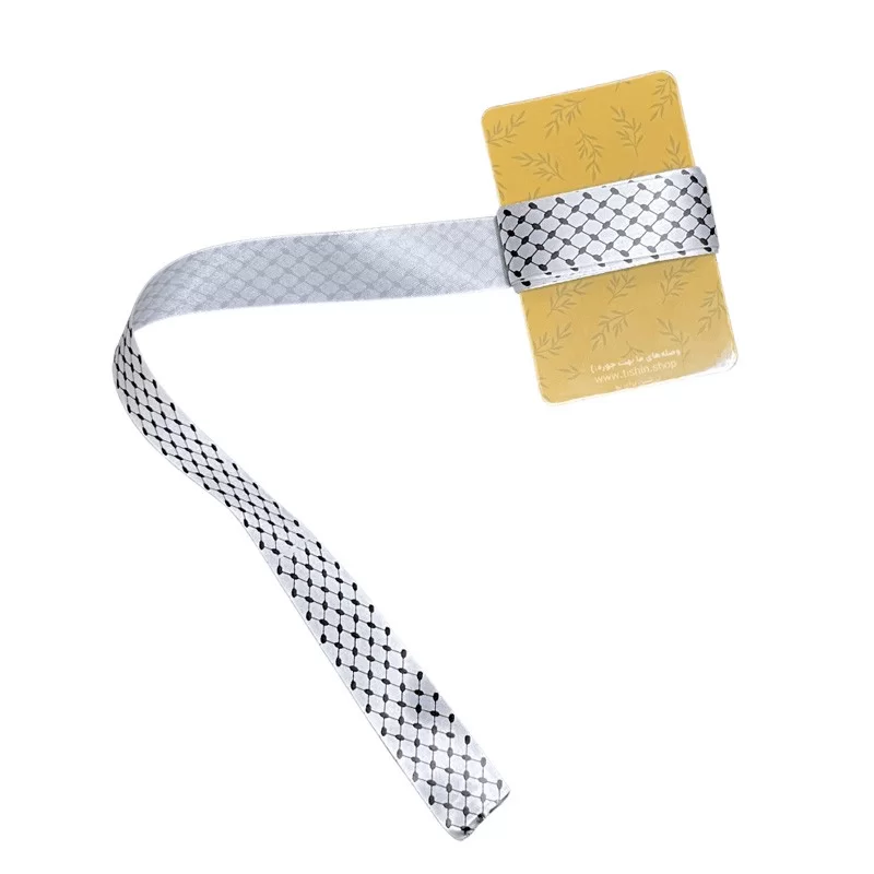 ربان ساتن کوفیه با طرح فلسطینی، از جنس ساتن و با عرض 2 سانتیمتر و طول 210 سانتیمتر، مناسب برای بستهبندی هدایا، جعبه کادو و محصولات فرهنگی در مناسبتهای مذهبی است.