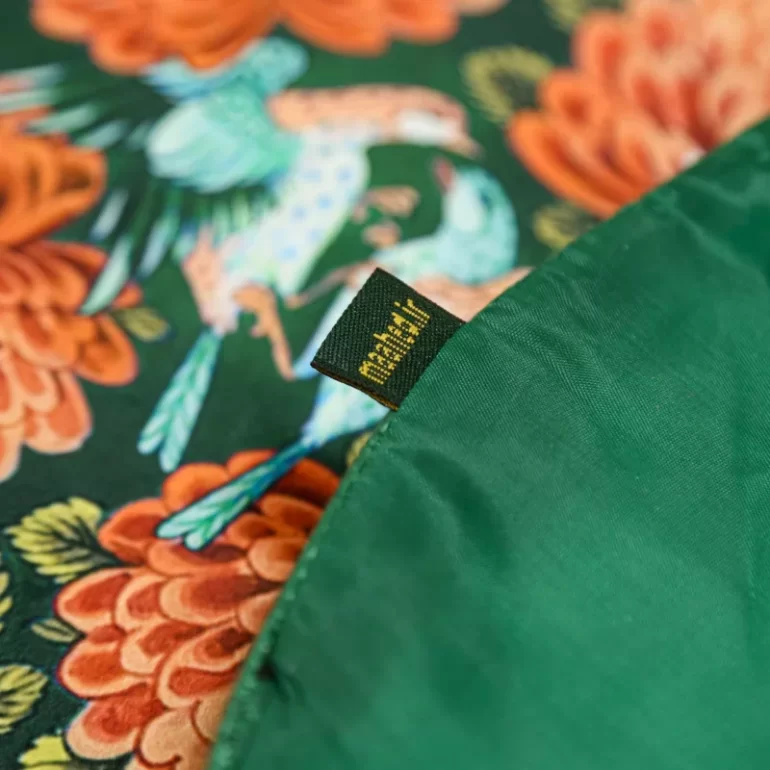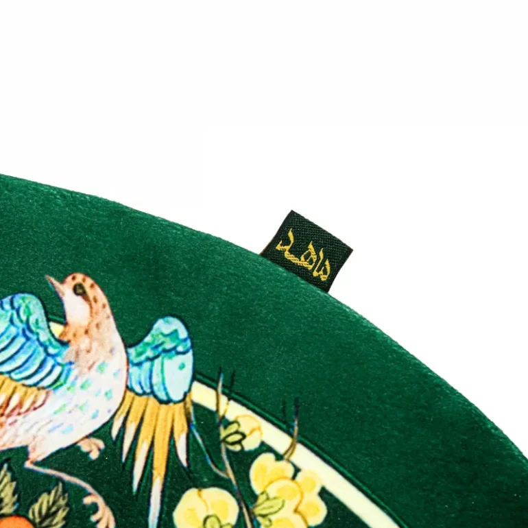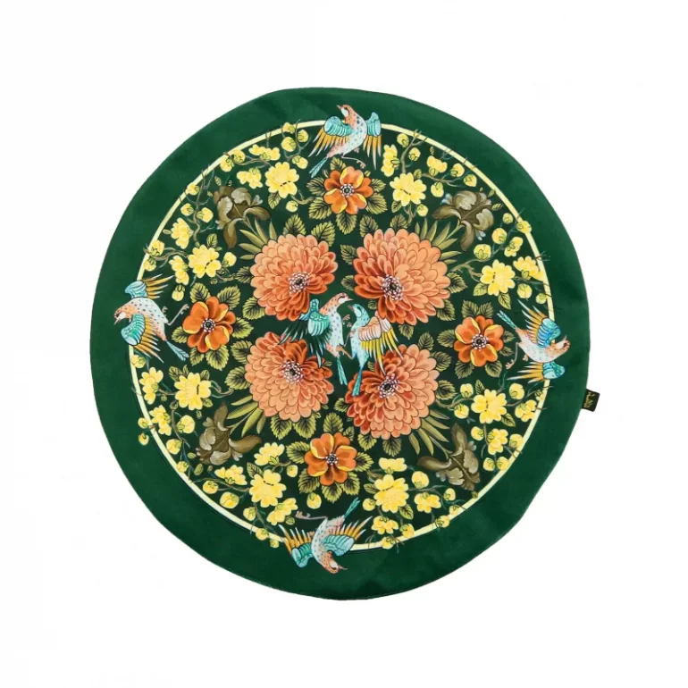 رومیزی گرد طرح گل و مرغ سبز