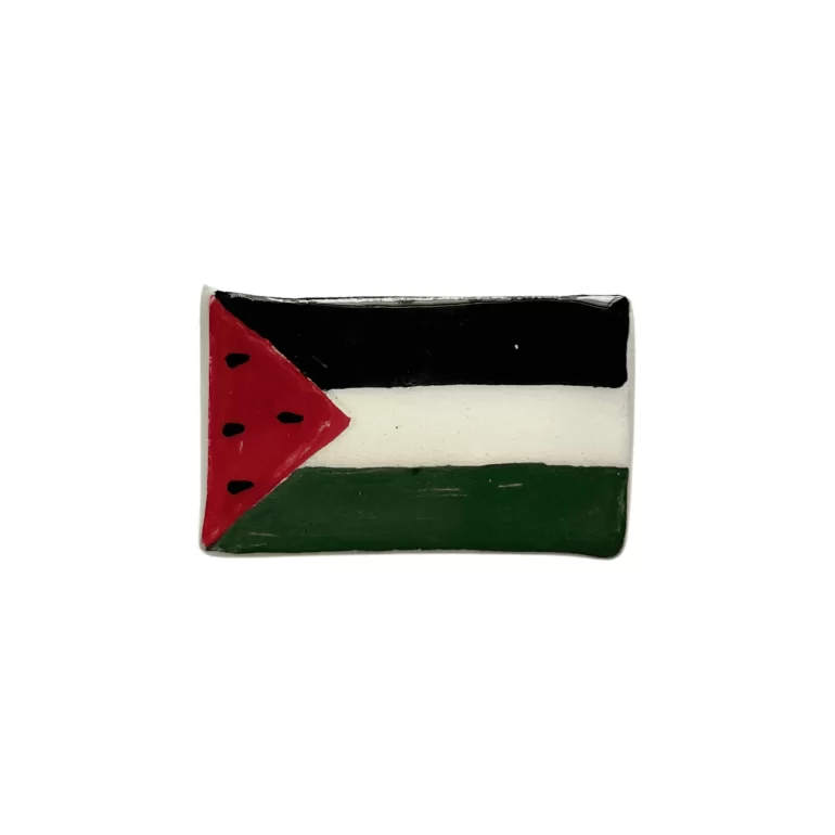 مگنت سفالی پرچم هندوانهای فلسطین، محصولی دستساز با لعاب درخشان است که نماد مقاومت و فرهنگ فلسطین را به تصویر میکشد. این مگنت با تلفیق پرچم فلسطین و هندوانه، دارای آهنربای قوی برای تزیین یخچال یا سطوح فلزی است. مناسب برای فعالان اجتماعی و فرهنگی، هدیه نمادین در مناسبتهای مرتبط با فلسطین و یادبود برای غرفههای حمایت از فلسطین.